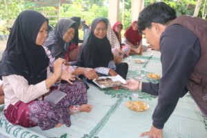 Pelaksanaan kegiatan berlangsung dengan lancar dan mendapatkan respon yang sangat baik dari para peserta. Ibu-ibu PKK mengikuti kegiatan dengan antusias, mulai dari penyampaian materi, praktik pembuatan brownies krispi tepung singkong, hingga diskusi mengenai pengemasan serta potensi pemasaran produk. Mahasiswa KKN Reguler 155 Kelompok X.A.3 berperan aktif sebagai fasilitator dan pendamping selama kegiatan berlangsung. Selain praktik pembuatan produk, tim KKN juga memberikan edukasi mengenai pentingnya standarisasi resep, perhitungan sederhana biaya produksi, serta strategi penentuan harga jual agar produk memiliki daya saing di pasar. Melalui pendekatan partisipatif, kegiatan ini tidak hanya bersifat pelatihan, tetapi juga membangun motivasi kewirausahaan bagi ibu- ibu PKK agar lebih percaya diri dalam memulai usaha berbasis potensi lokal.